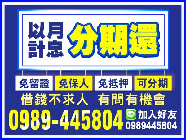 花 蓮 借 錢 ▼ 台北借錢 新北借錢 基隆借錢 桃園借錢 新竹借錢 苗栗借錢 台中借錢 彰化借錢 南投借錢 雲林借錢 嘉義借錢 台南借錢 高雄借錢 屏東借錢 宜蘭借錢 花蓮借錢 台東借錢 離島借錢 關閉 宜蘭借錢 花蓮借錢 台東借錢 離島借錢 以月計息,保證放款 急用不求人,借錢首選 簡單借,超優惠,鈔好借 月息超低利,值得妳一問 急用 就找我,借錢就是簡單 來電就撥款,可分期攤還 借貸款 注意事項 1、年齡要求:各類借款皆需滿20歲以上。2、貸款利率:貸款年利率2%-18%,依照借款人提供的自身條件不同而異,再由借貸雙方協議後訂定最終利率。3、還款期限:最低3個月,最長180個月,依照借貸雙方協議而訂。4、借款案例:A君急需現金30萬元,經多方比較利率後選定金主,雙方簽定於36個月內須還清借款,年利率6%計算,手續費:3000元,每期還款金額9127元,最後一期9111元,總還款金額新台幣328,556元。