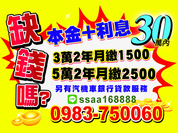 基 隆 借 錢 ▼ 台北借錢 新北借錢 基隆借錢 桃園借錢 新竹借錢 苗栗借錢 台中借錢 彰化借錢 南投借錢 雲林借錢 嘉義借錢 台南借錢 高雄借錢 屏東借錢 宜蘭借錢 花蓮借錢 台東借錢 離島借錢 關閉 基隆借錢 鈔好貸,超低息 30萬內,彈性週轉 健保卡借款,當面放款 當日撥款,助您週轉 來電一定借,借錢找我 30萬內,借錢找我 借貸款 注意事項 1、年齡要求:各類借款皆需滿20歲以上。2、貸款利率:貸款年利率2%-18%,依照借款人提供的自身條件不同而異,再由借貸雙方協議後訂定最終利率。3、還款期限:最低3個月,最長180個月,依照借貸雙方協議而訂。4、借款案例:A君急需現金30萬元,經多方比較利率後選定金主,雙方簽定於36個月內須還清借款,年利率6%計算,手續費:3000元,每期還款金額9127元,最後一期9111元,總還款金額新台幣328,556元。